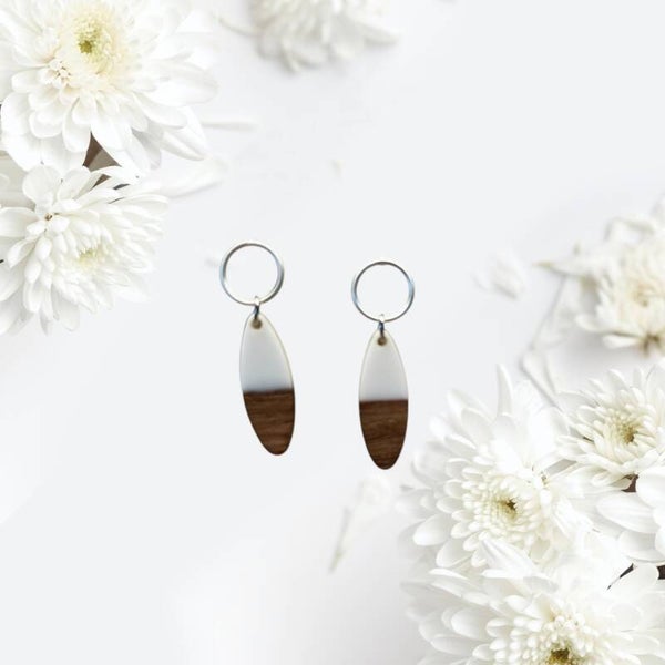 Open zilverkleurige studs met een houten bedel